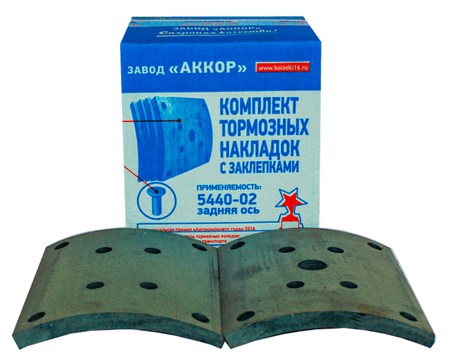 Накладки тормозные с заклёпками (12 отверстий) 6520-3501105 — комплект фрикционных накладок для тормозных колодок автомобилей КамАЗ. Предназначены для установки на колодки барабанного тормозного механизма и используются при замене изношенных накладок. Обеспечивают торможение за счёт трения о рабочую поверхность тормозного барабана.